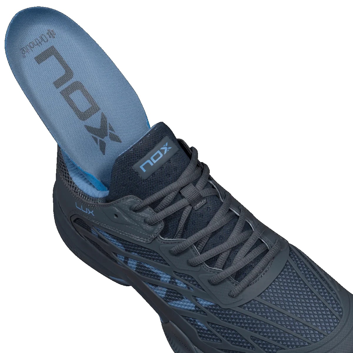 AT10 LUX är den senaste versionen av en av NOX mest ikoniska padelskor. Modellen har etablerat sig som ett förstahandsval för professionella spelare och ambitiösa motionärer. Det är en sko som kombinerar modern design med avancerad teknik för att maximera prestationen på banan och samtidigt skydda fötterna under intensiva matcher.