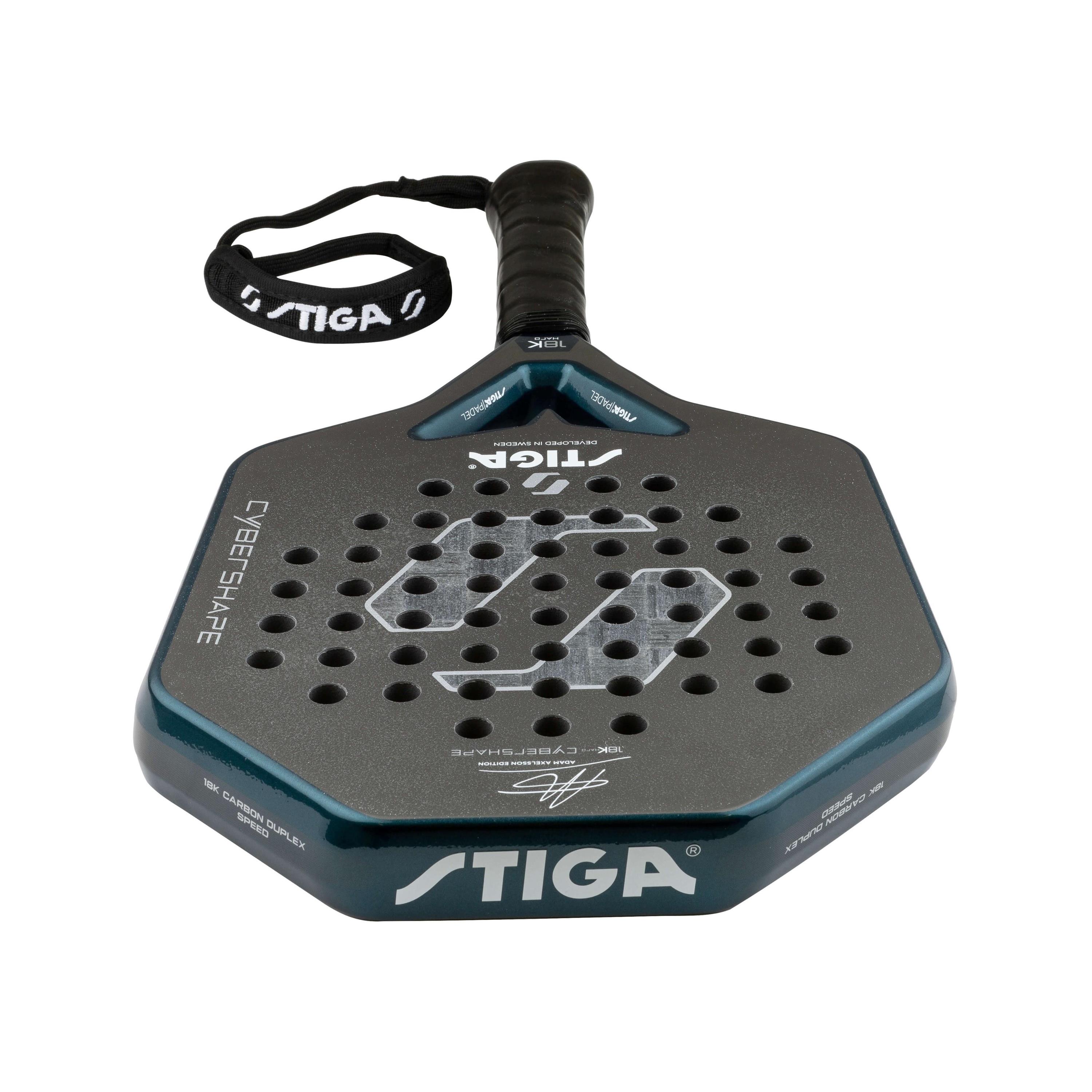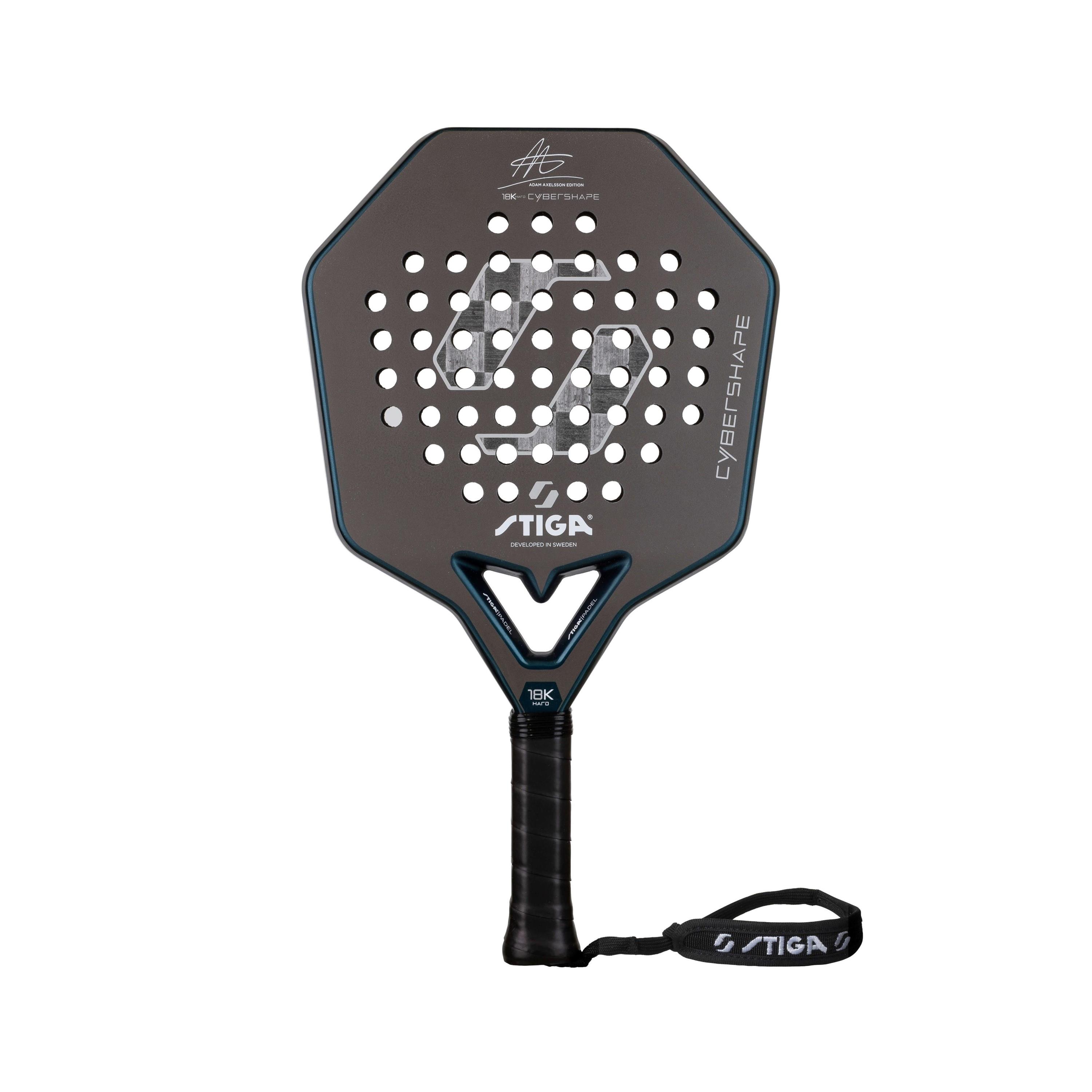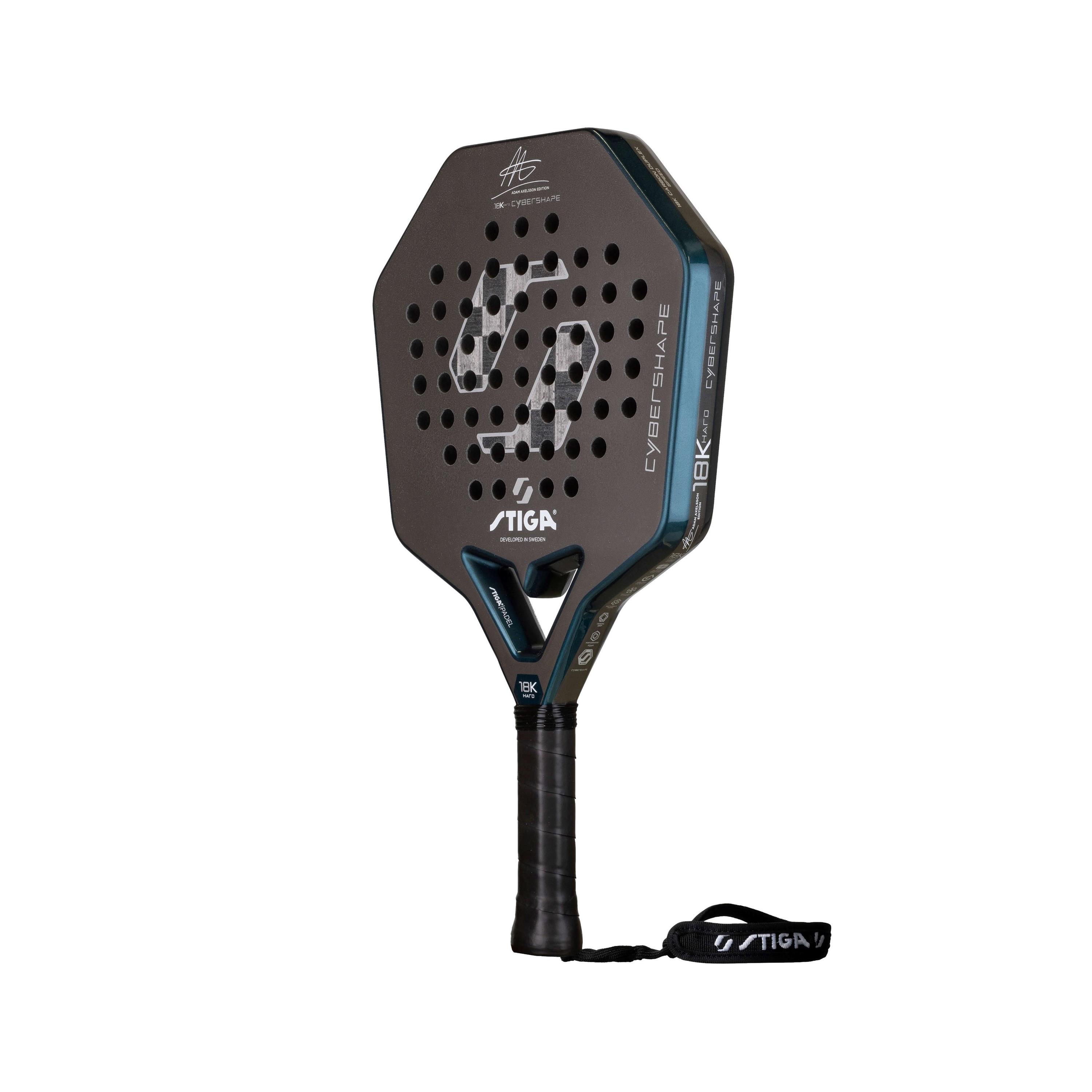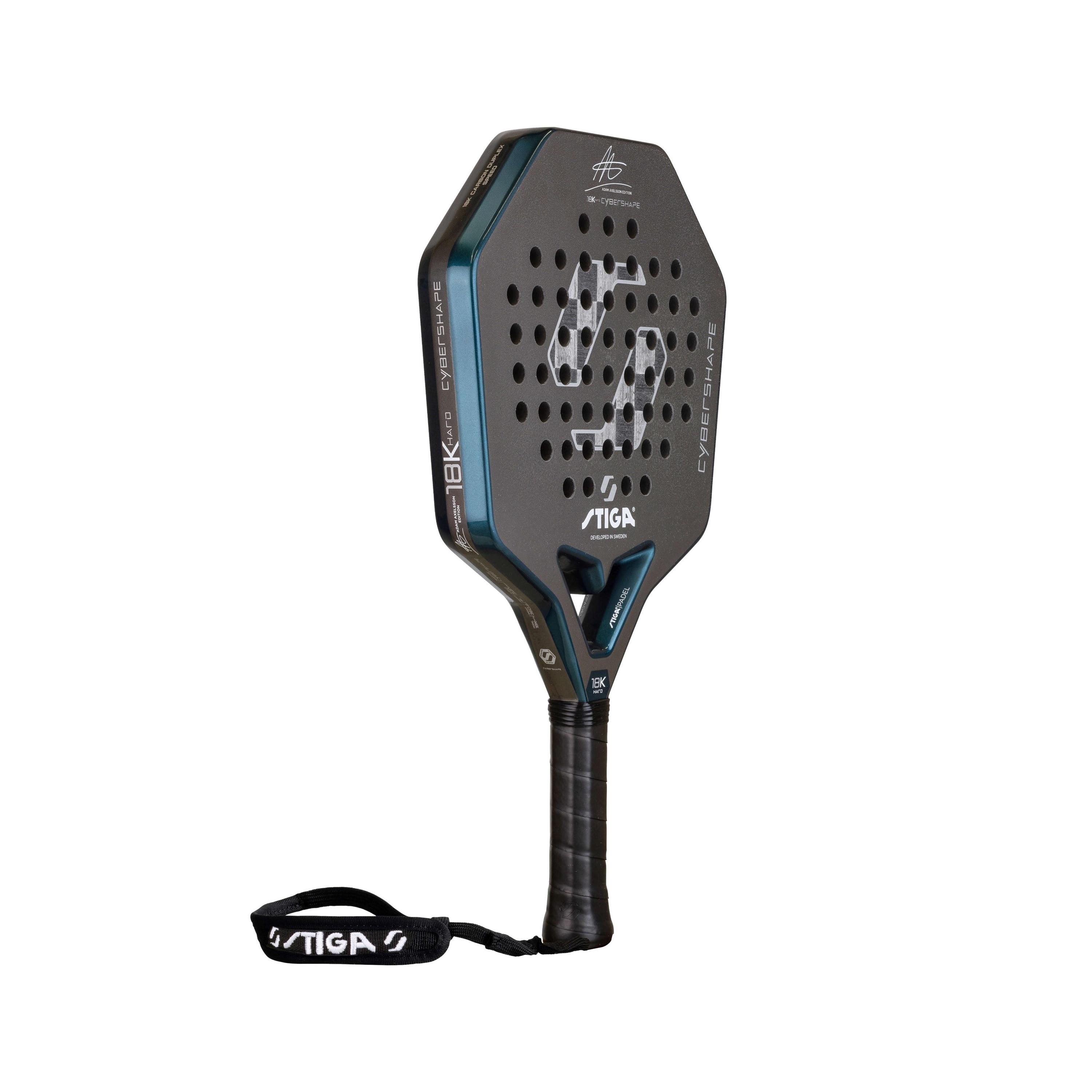 Adam Axelsson är en av Sveriges mest lovande padelspelare – känd för sin explosiva spelstil, långa räckvidd och ständiga jakt på perfektion. Den talangfulle STIGA-spelaren gör även succé internationellt och var först i världen med att spela med ett Cybershape-racket. För en spelare som Adam är bara det bästa gott nog och det här padelracket gör honom verkligen inte besviken. Cybershape 18K Hard Adam Axelsson Edition är ett kraftfullt anfallsracket med oslagbar acceleration, grym bollkänsla och maximal kontroll.
