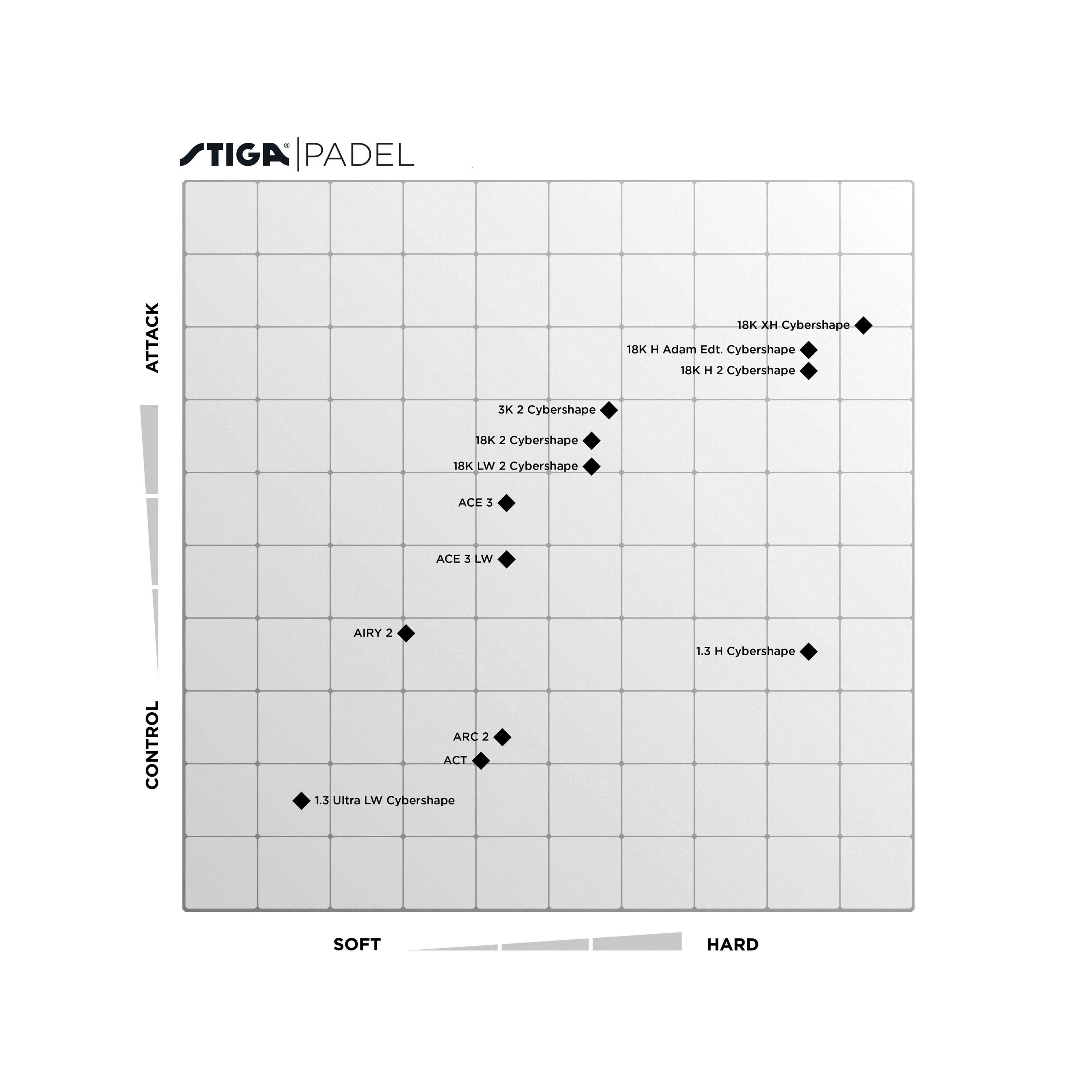 I samarbete med KTH har Stiga studerat jämförelsen mellan den runda formen och Cybershape-formen. Mätningarna visar att kraftöverföringen ökar med Cybershape-formen och tillsammans med materialvalen skapar det ett mycket kraftfullt racket som hjälper dig att skapa mer fart. Cybershape har också 20 % större sweetspot än runda padelracketar.